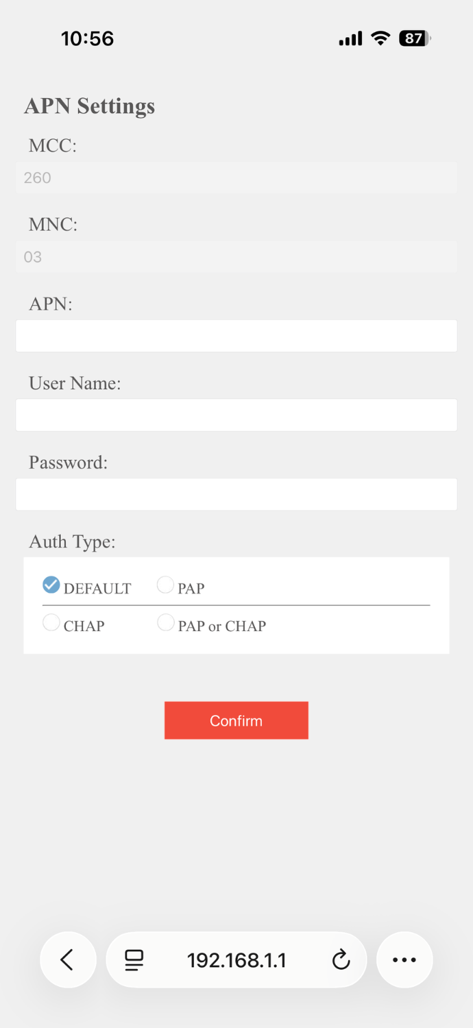 You will need to change a setting on the device. Once connected to the Roam-On's wifi, open a browser on your device (phone/tablet or PC) and go to 192.168.1.1